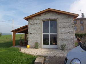 reconstruction à l’identique d’une maison en galet des la Drôme proche de Romans. Grande baie vitrée sur le versant du vercors,architecte,drôme, ardèche,rénovation, réhabilitation, construction, neuf , ancien, ferme, architecture,ossature métallique, charpente métallique, bardage, industrie, tertiaire,patrimoine, bâtiment public,construction métallique,dessins, détails, pensée, réflexion, confiance, partenaire, paysage, maisons, logements, villas, thermique, écologie, économie, archicad, archiwizard, acier, matériaux, matérialité, ambiance, lumière,ombres, composition, assemblage