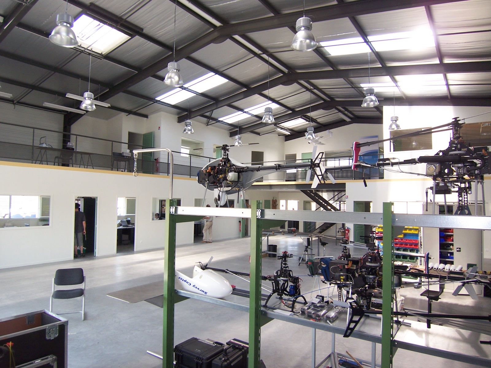 hélicoptère 30 août 2015 test essai modélisme ossature métallique bardage bac acier panneaux isolants sol ciré bureaux lumière dôme