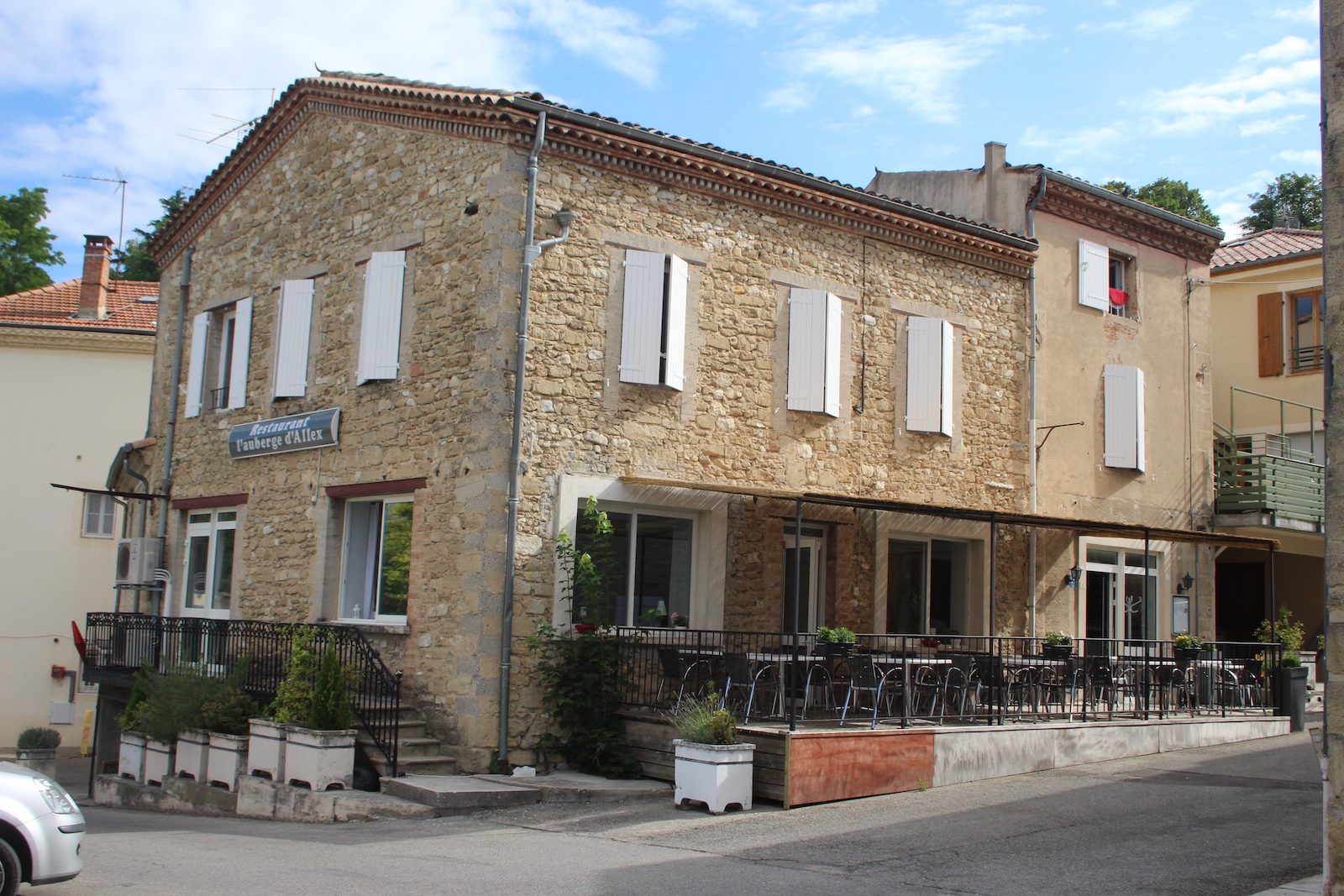 façade pierres ALLEX Drôme terrasse ombragée